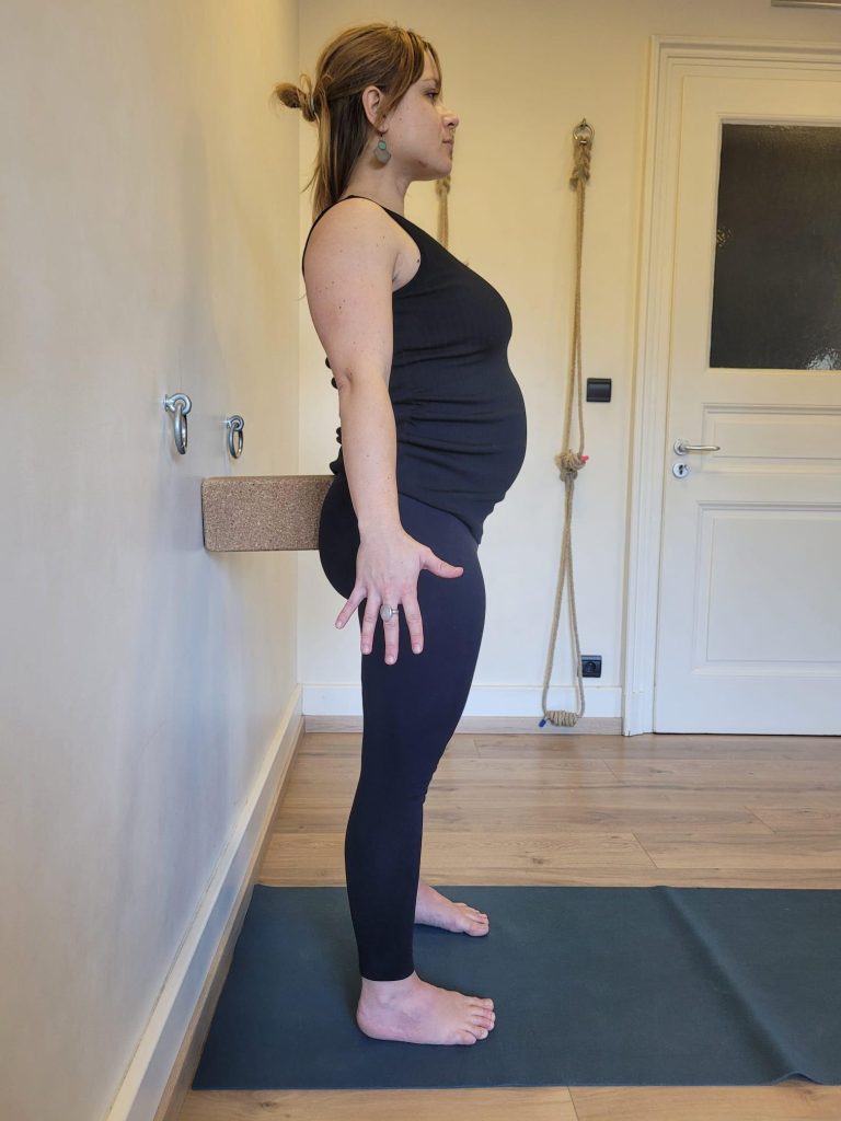 Dans le cadre de la grossesse, le mur permet de soutenir le corps à l’image d’un tuteur pour une plante. Aussi il favorise la prise conscience de la lordose lombaire et de corriger la tendance à l’hyper lordose (liée au poids de l’abdomen).